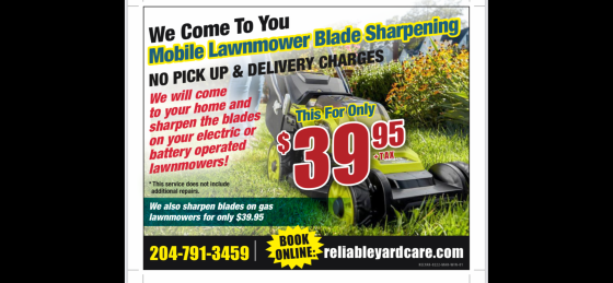 Do you have any questions for Winnipeg’s Mobile Lawnmower Tune-Up $59.95?Explain your goals and requirements or ask for the additional information you need to make a decision.